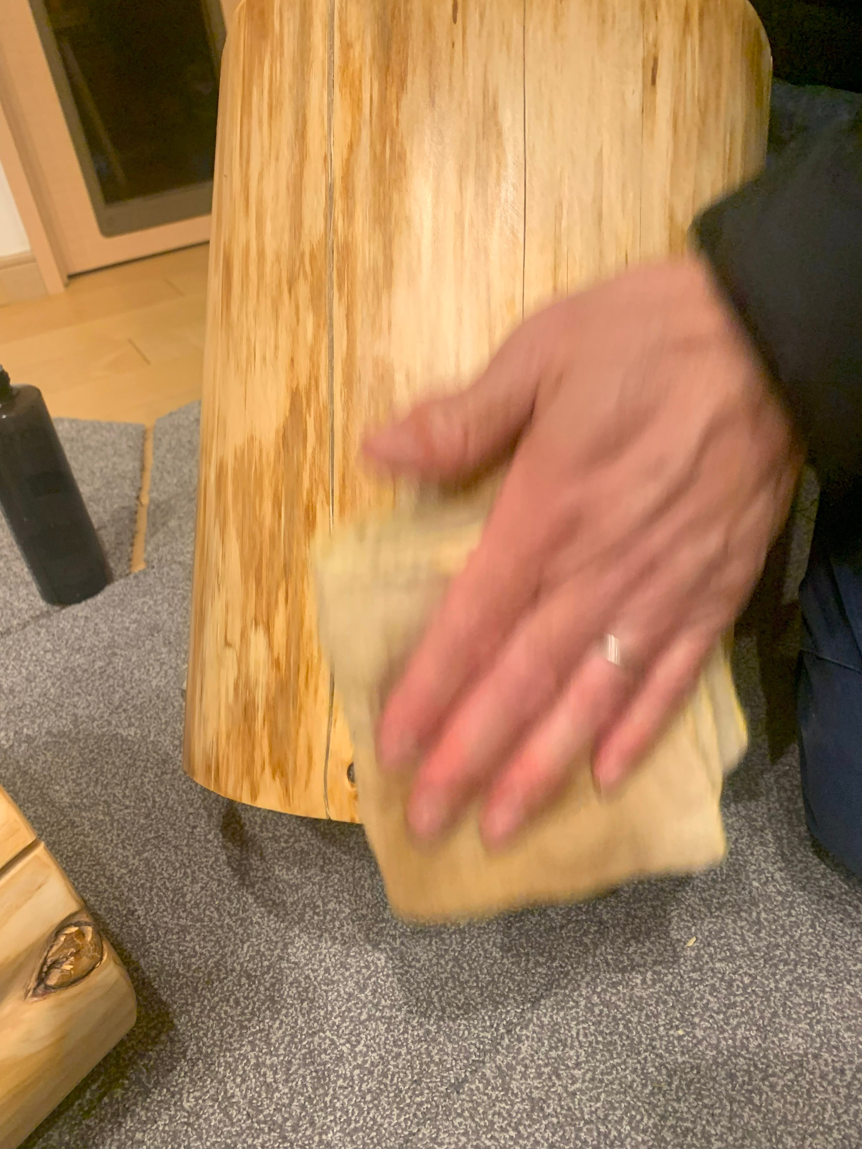 ・ 当店の丸太スツールの傷つきやすい表面に優しく塗布して